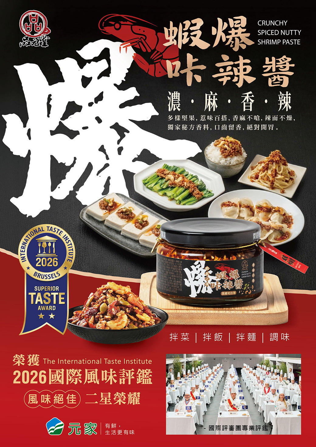 《品元堂 蝦爆卡辣醬》榮獲 2026 iTi 國際風味評鑑風味絕佳二星獎章!